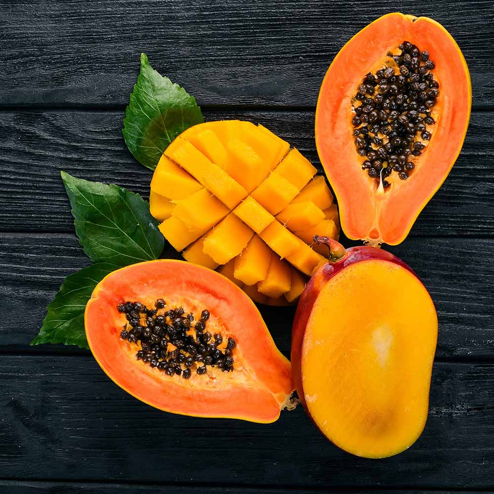 Tropical mango and papaya scents transport you to sun-drenched orchards, balanced by soft musk.